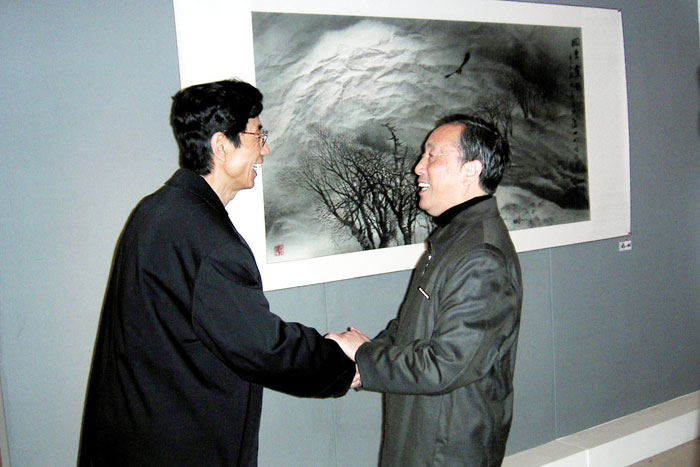 国家工艺美术大师,景德镇陶瓷学院院长秦锡麟先生参观画展并同杨